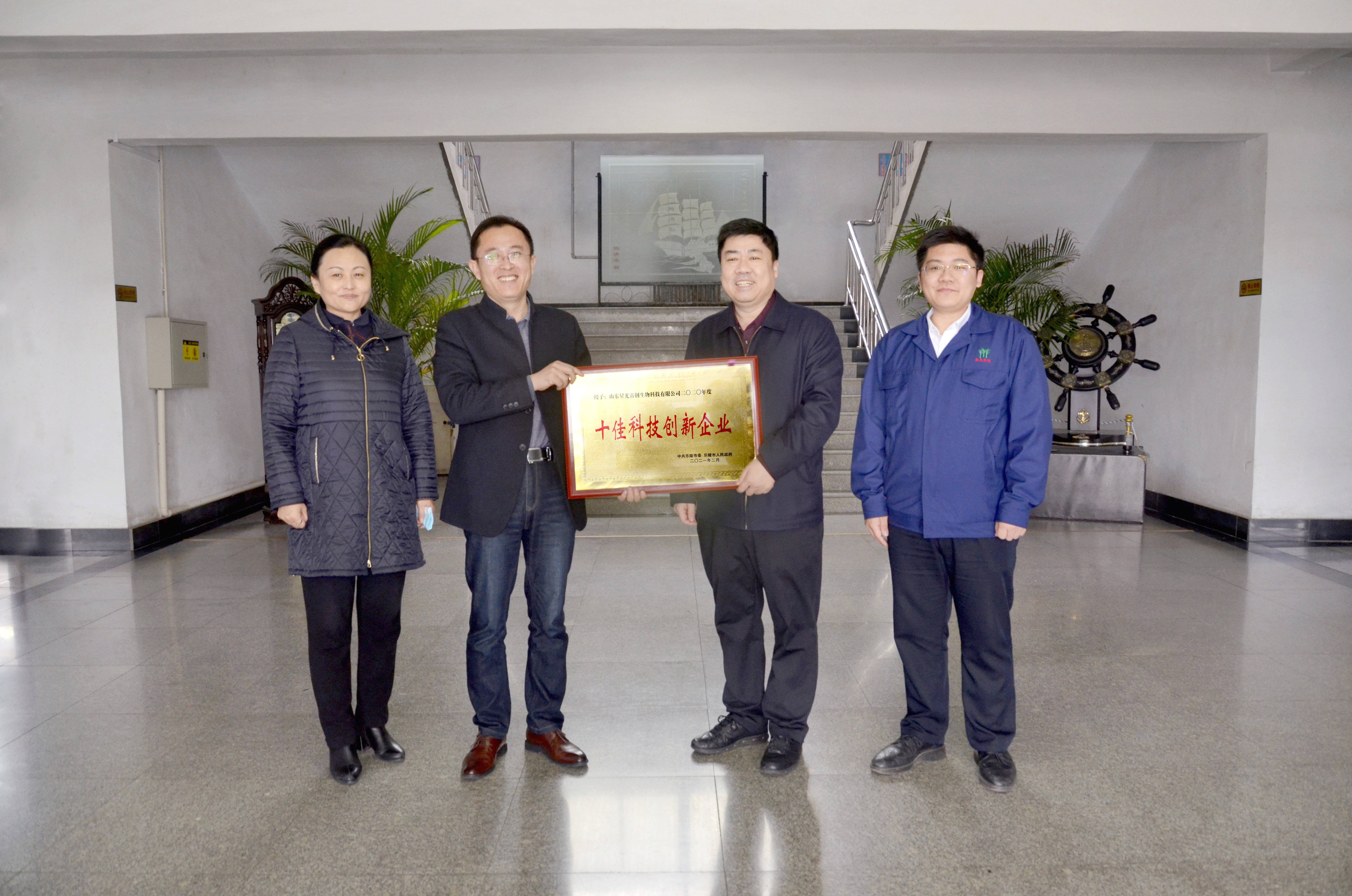 近日,樂陵市開展十個“十佳”企業(yè)、企業(yè)家評選活動,對本市經濟效益好、創(chuàng)新能力強、社會信譽高的企業(yè)給予表彰和激勵,星光首創(chuàng)獲得2個“十佳”榮譽稱號,分別為“十佳科技創(chuàng)新企業(yè)、十佳高成長型企業(yè)”,總經理曹建幫被評為“十大杰出青年企業(yè)家”。2月25日,樂陵市副市長董軍,團市委書記紀阿男依次來企業(yè)頒發(fā)獎牌、證書,并表示祝賀。