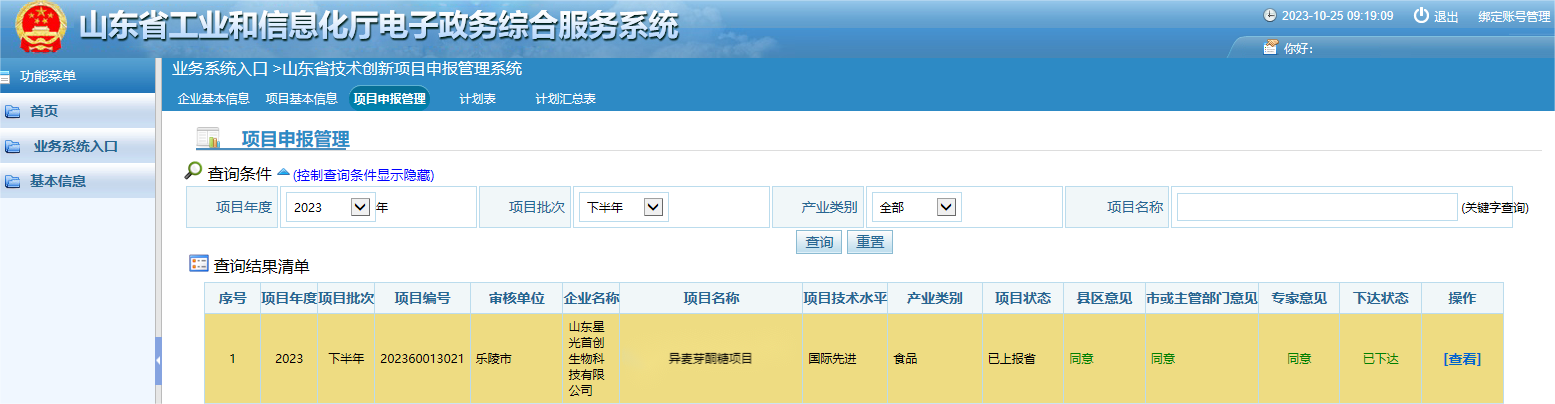 星光首創(chuàng)一項目獲得山東省技術創(chuàng)新項目批復! 2023.10.25